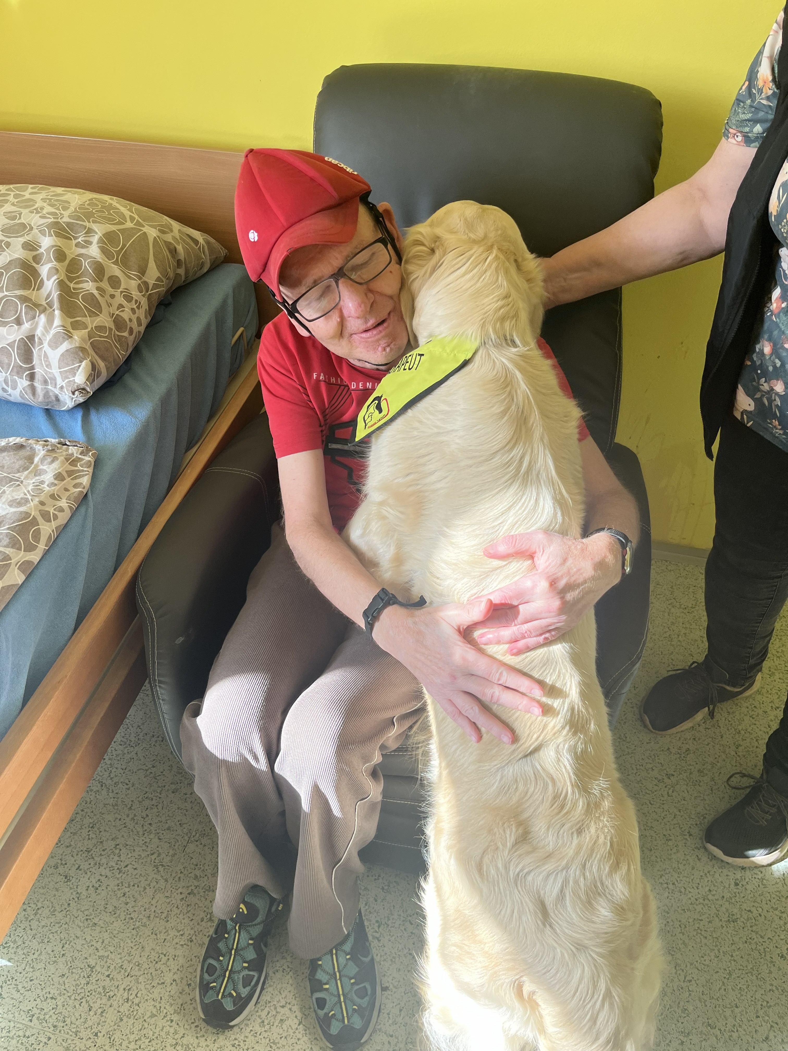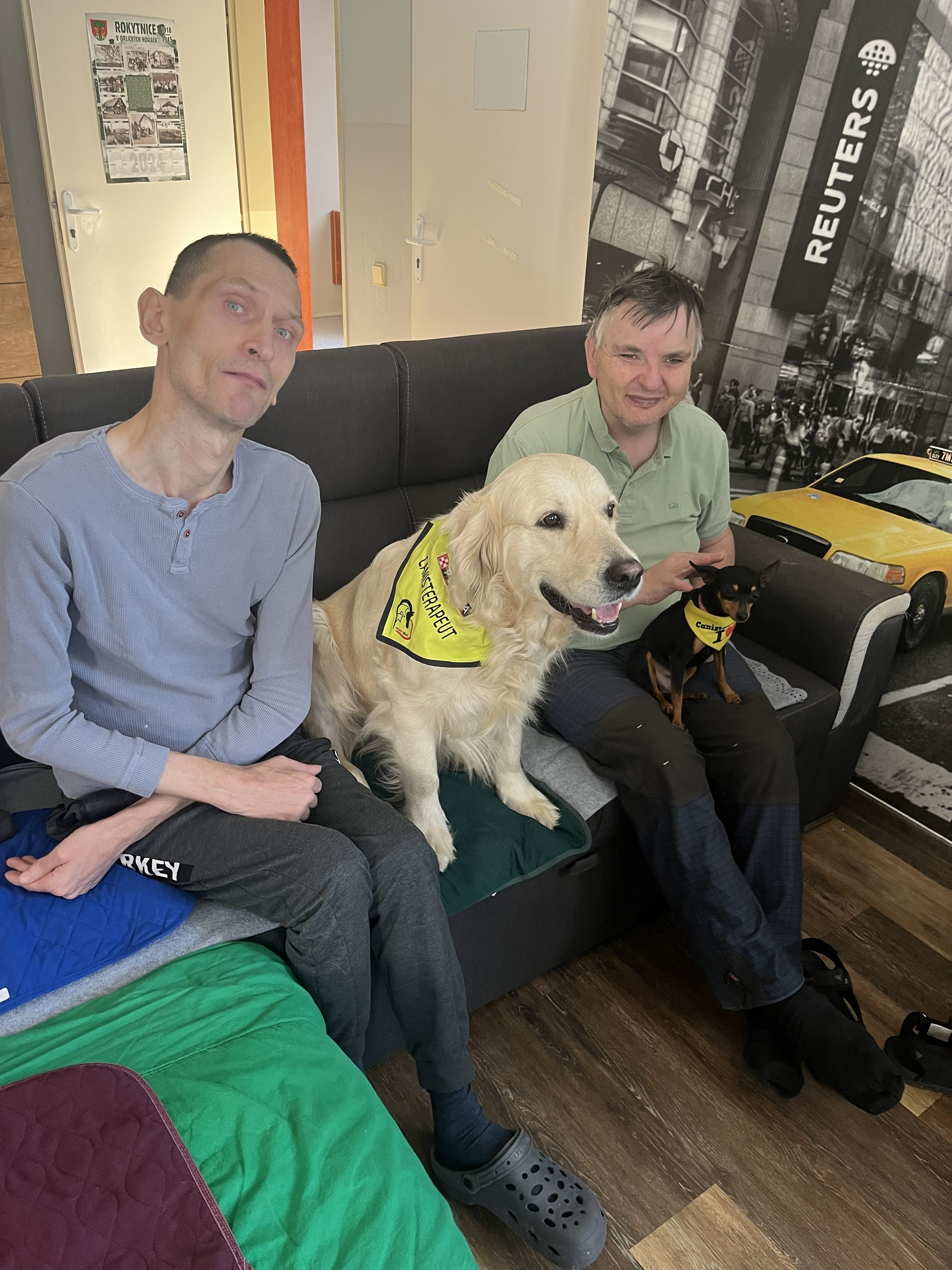 V rámci individuální canisterapie nás v Domově pod Kuňkou navštívili psí terapeuti, kteří uživatelům vykouzlili úsměvy na tvářích. Psí společnost pomohla navodit pocit klidu a pohody.
