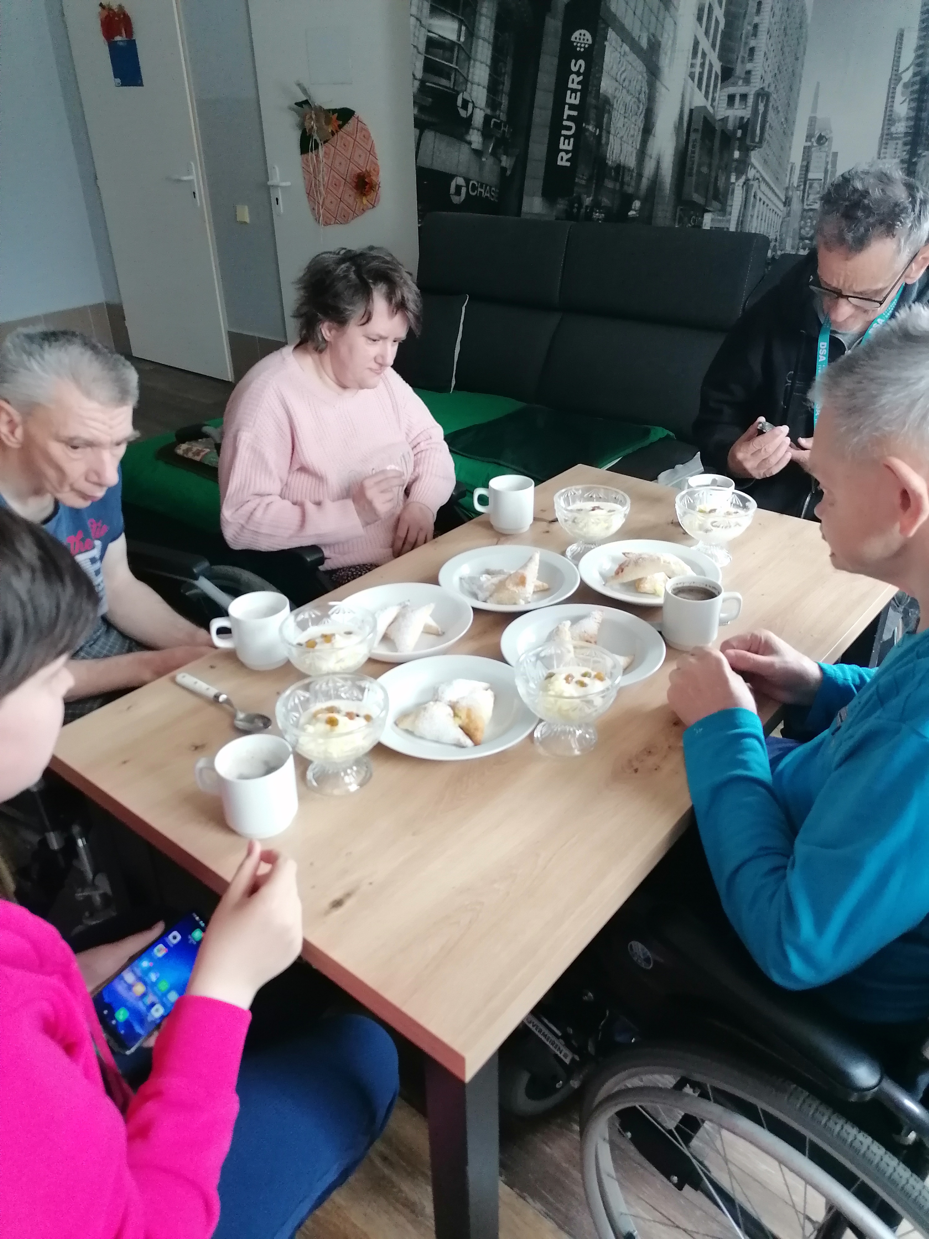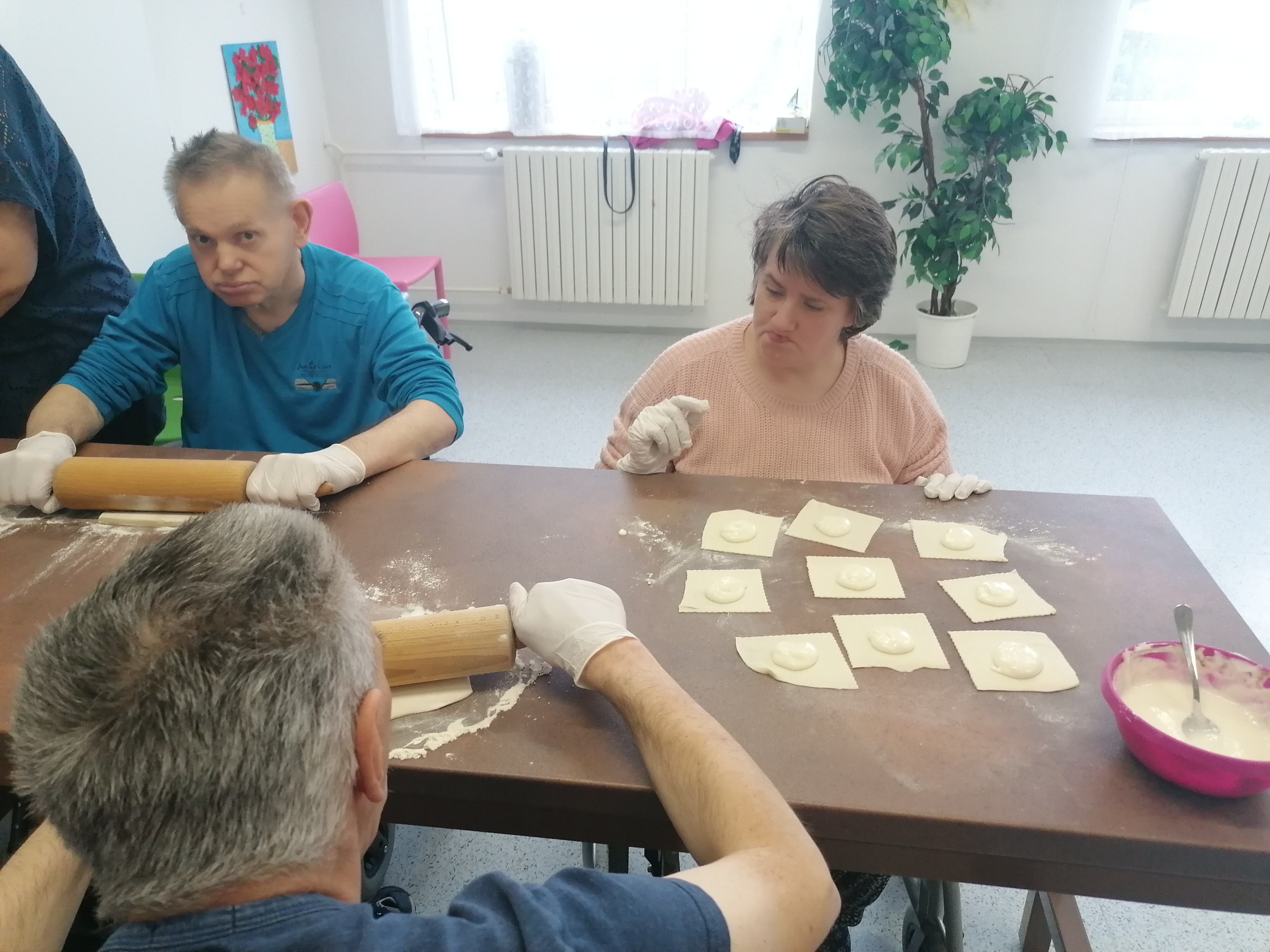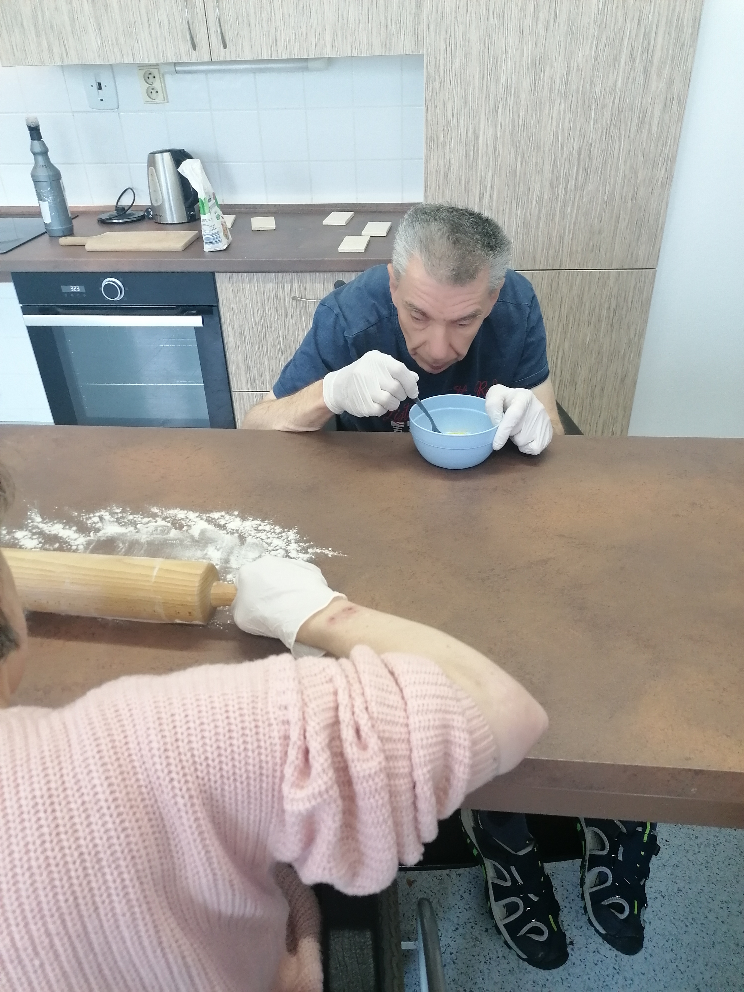 Dnes se uživatelé Domova pod Kuňkou dali do pečení šátečků. Po upečení následovalo společné posezení a ochutnávání.
