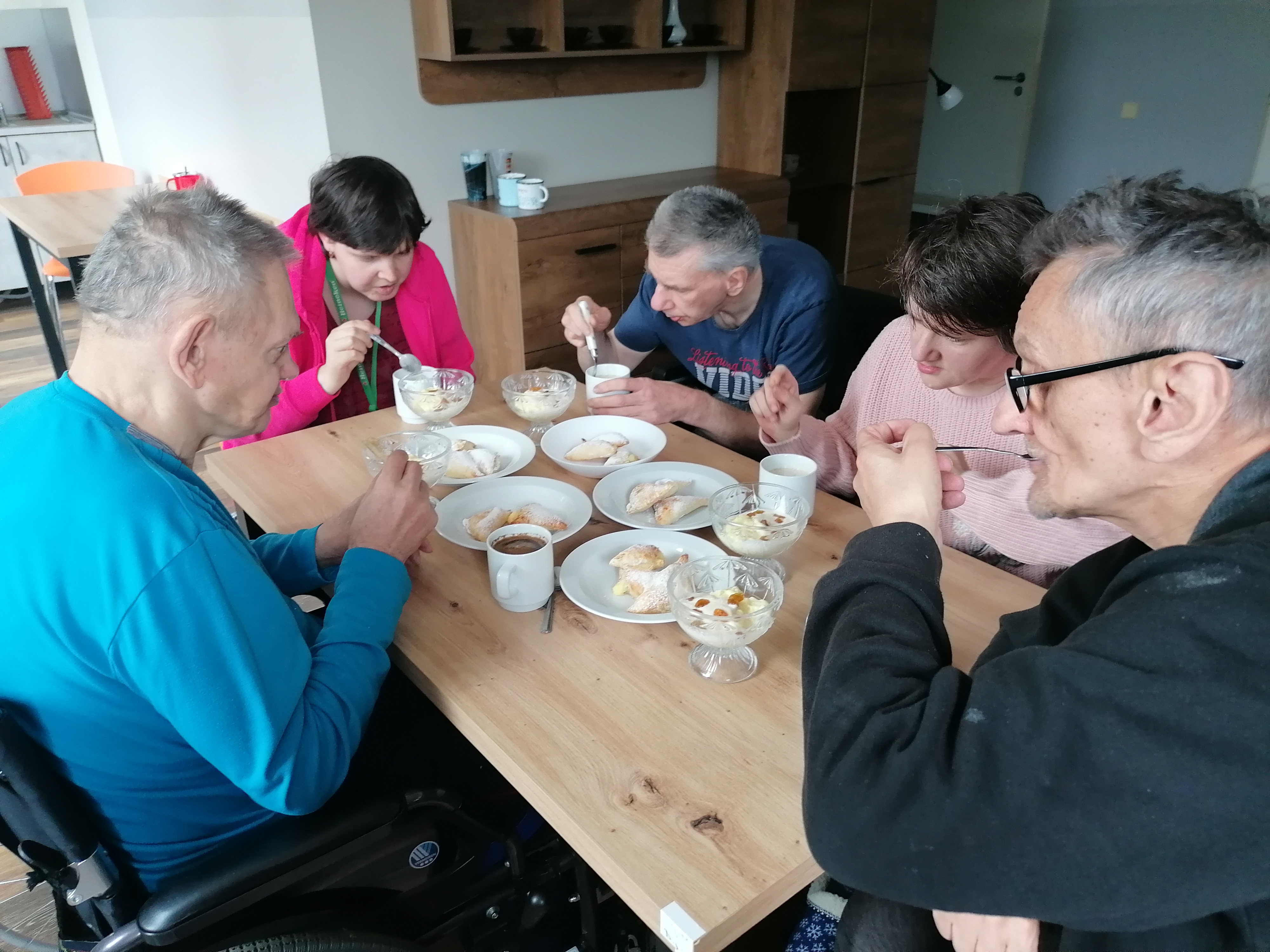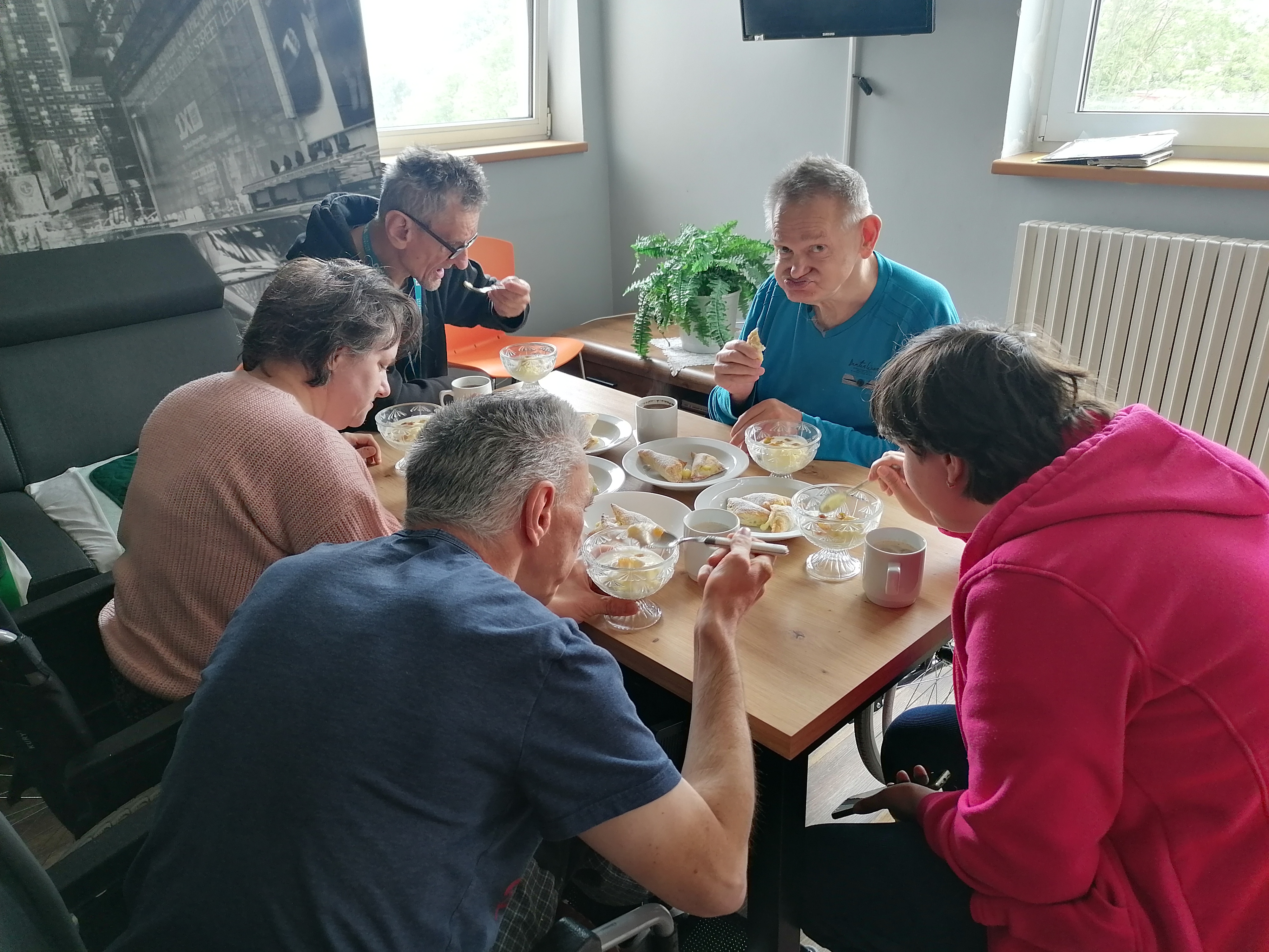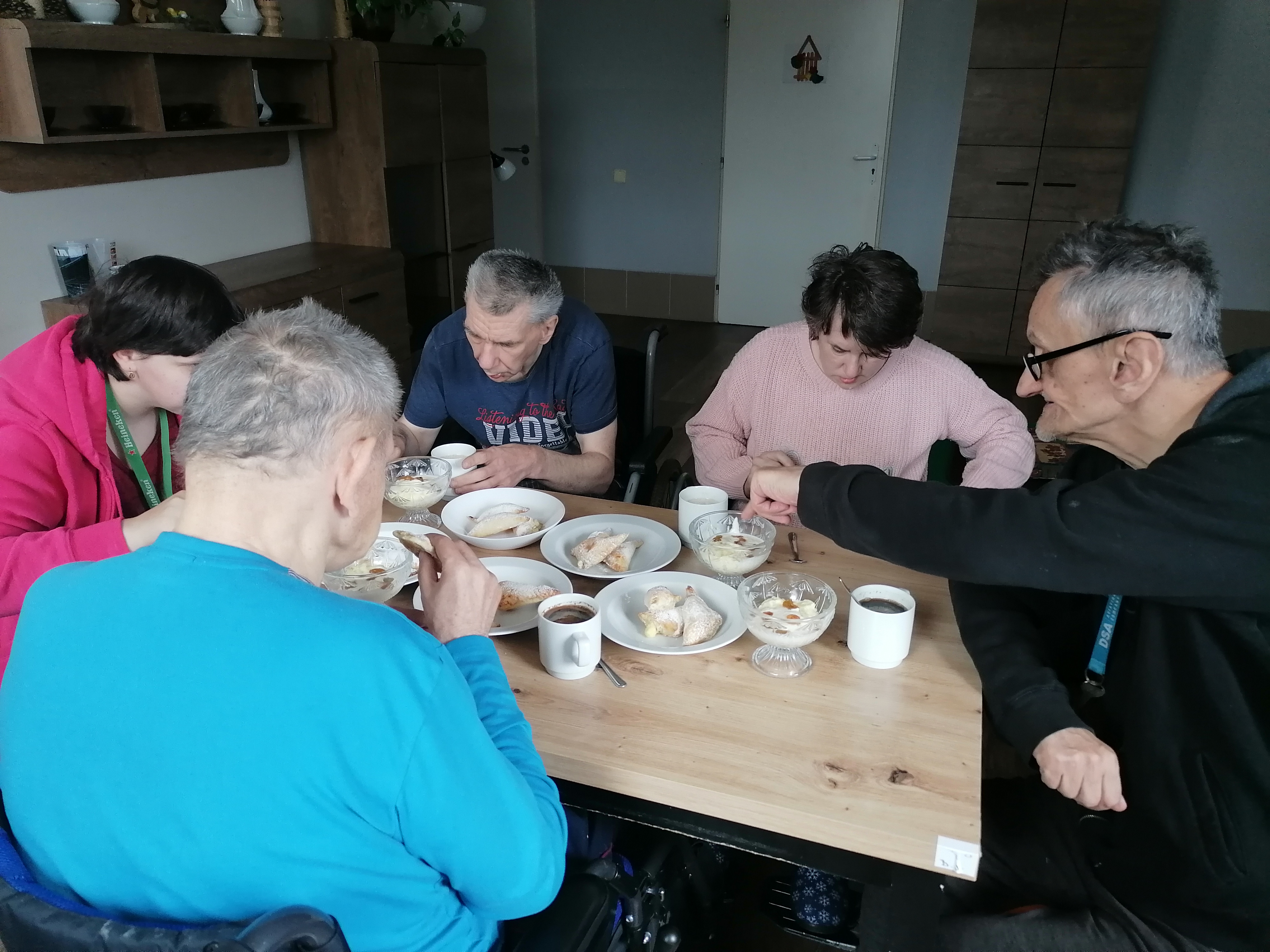 Dnes se uživatelé Domova pod Kuňkou dali do pečení šátečků. Po upečení následovalo společné posezení a ochutnávání.
