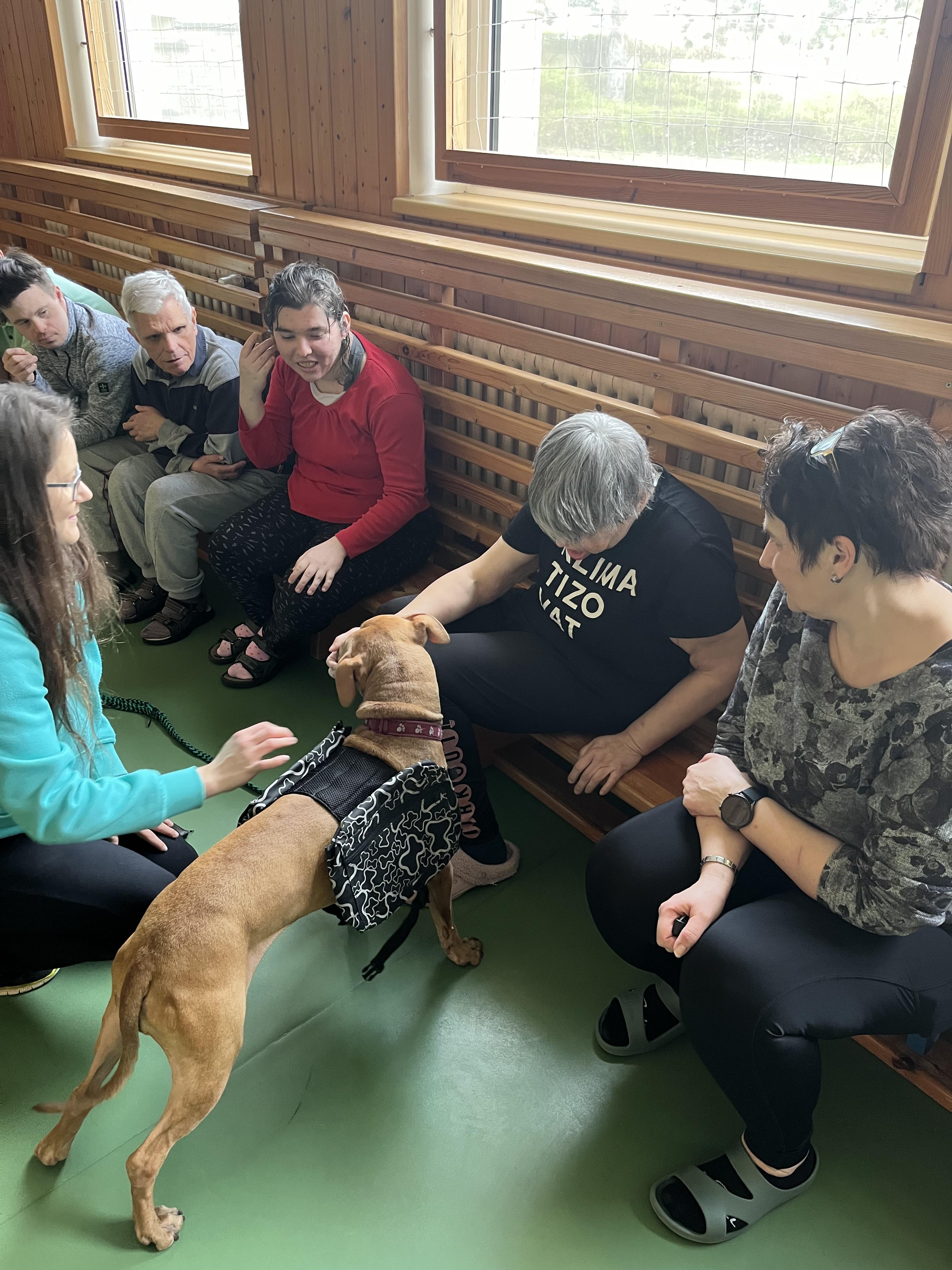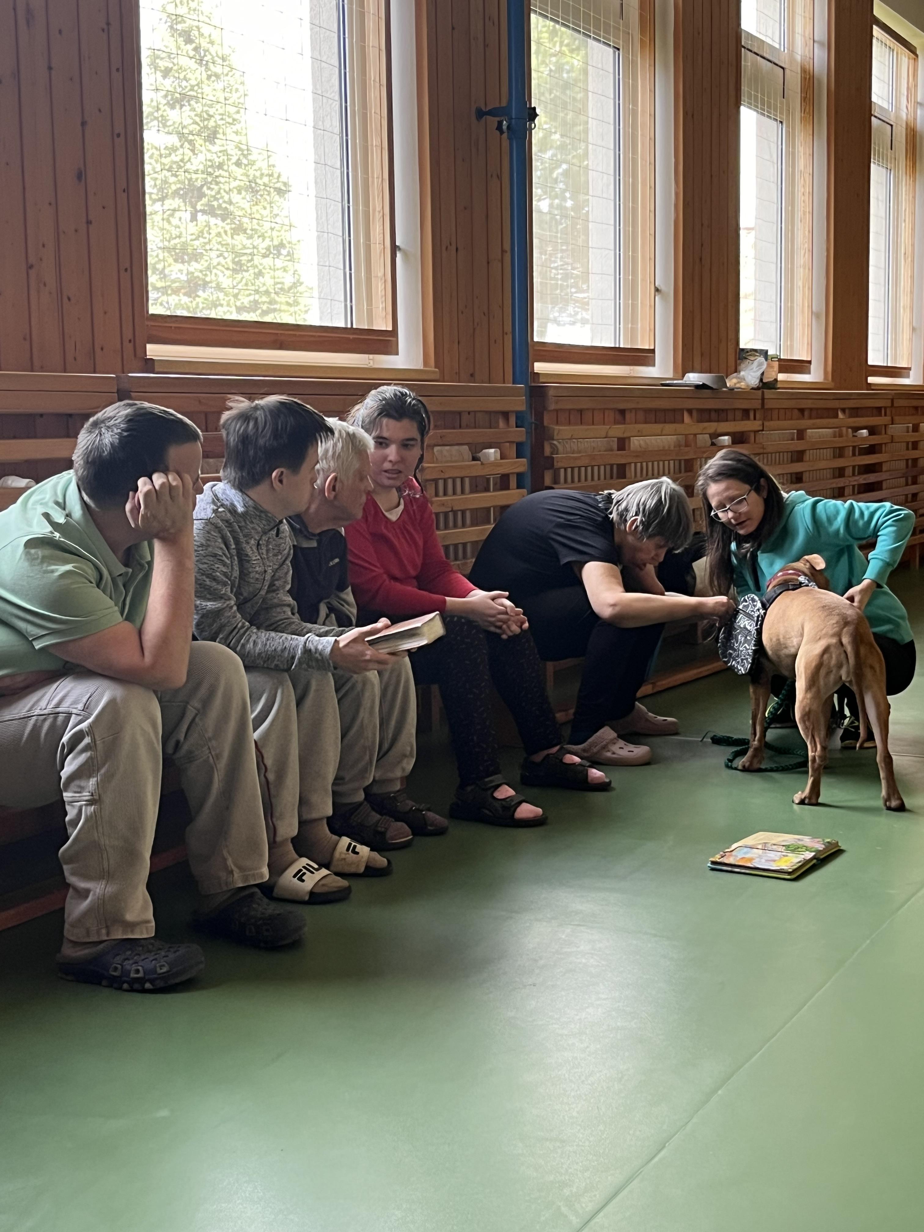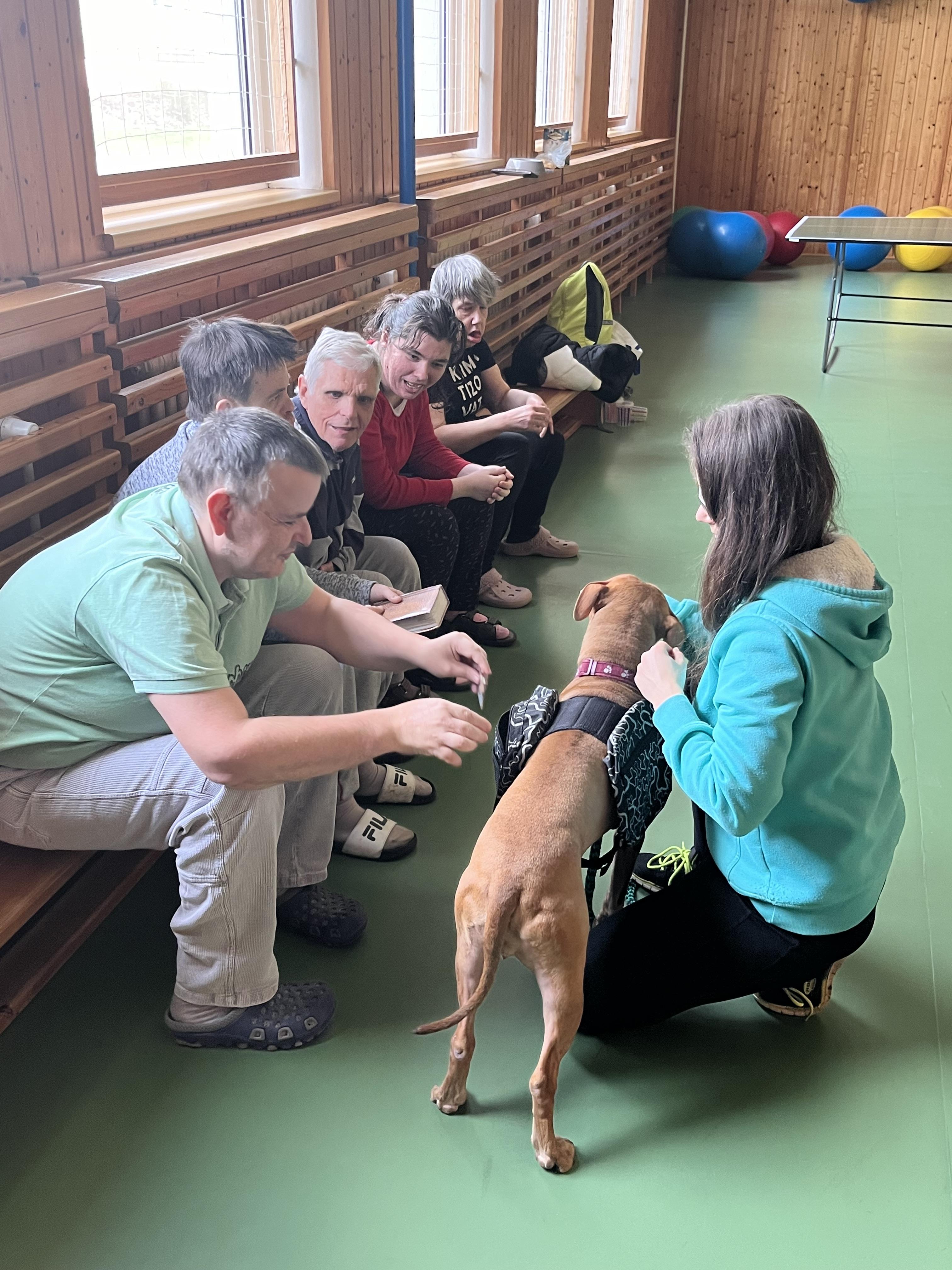 Uživatelé Domova pod Kuňkou rádi tráví čas se zvířaty, a tak se zúčastnili skupinové canisterapie.