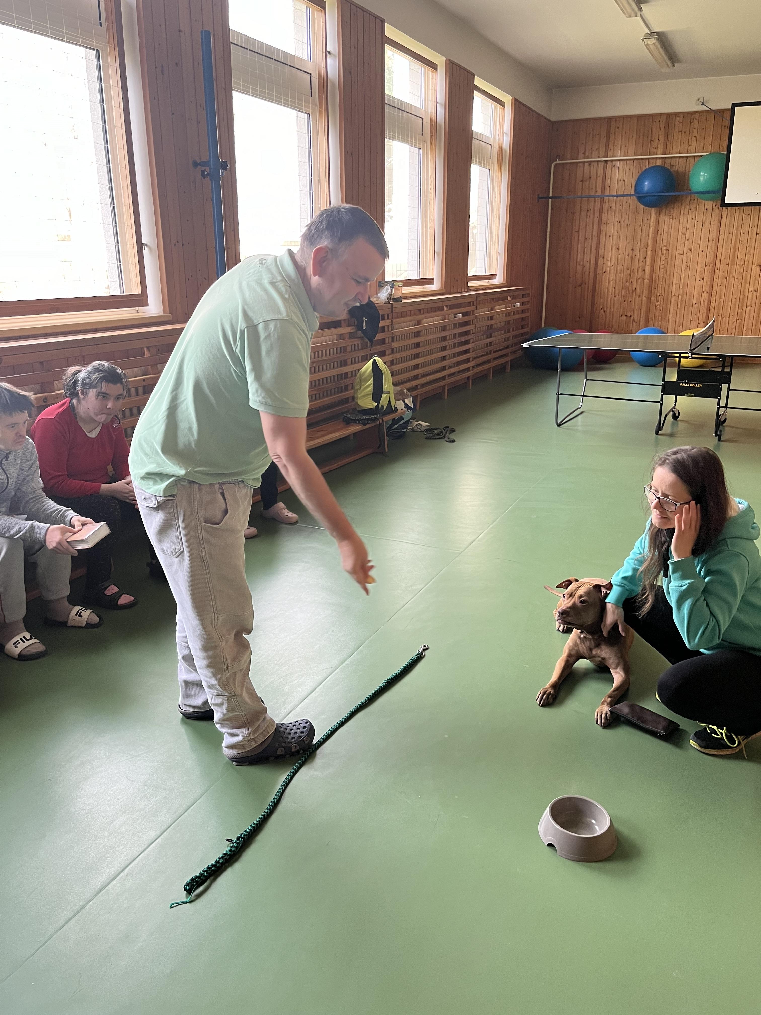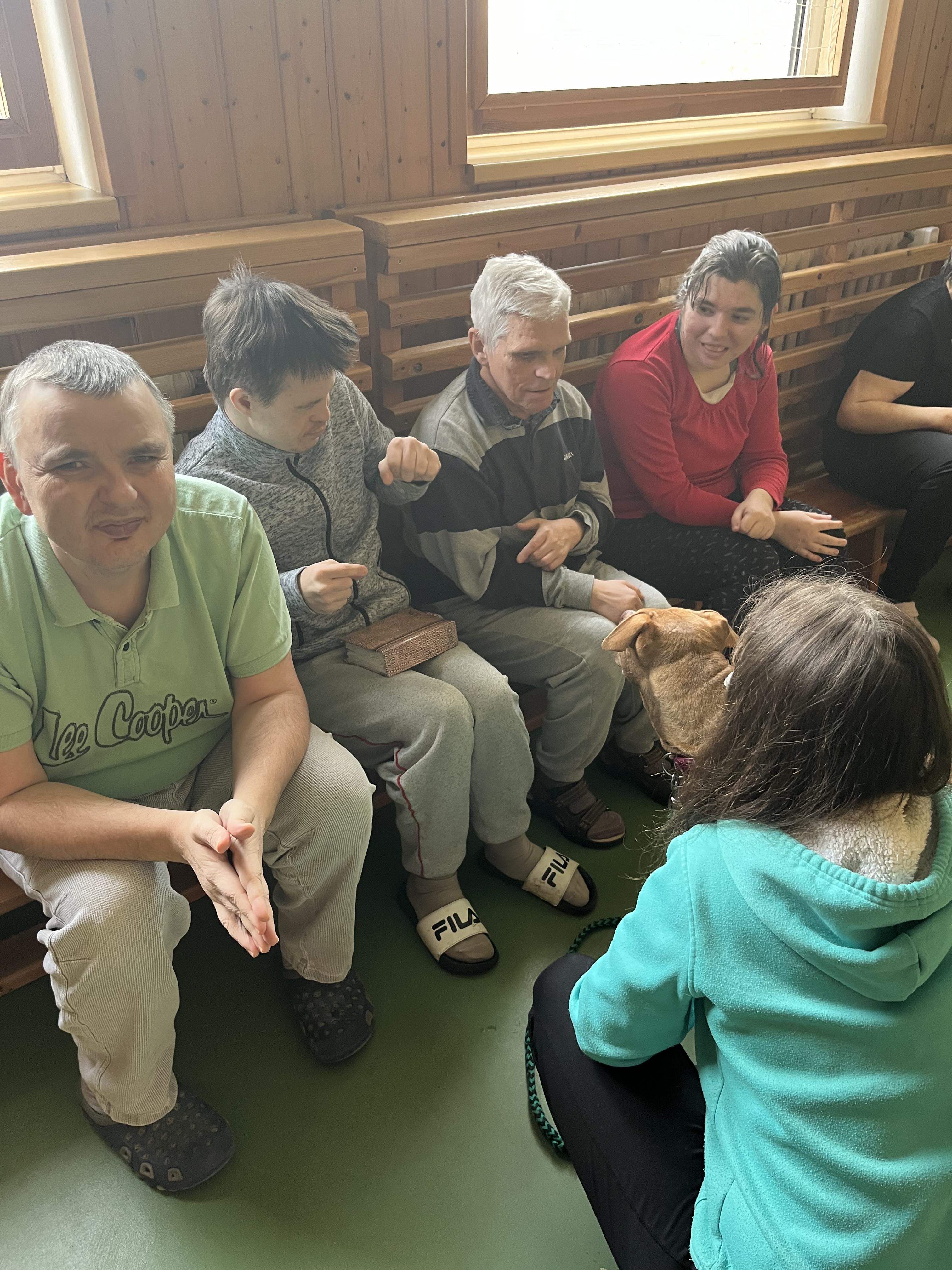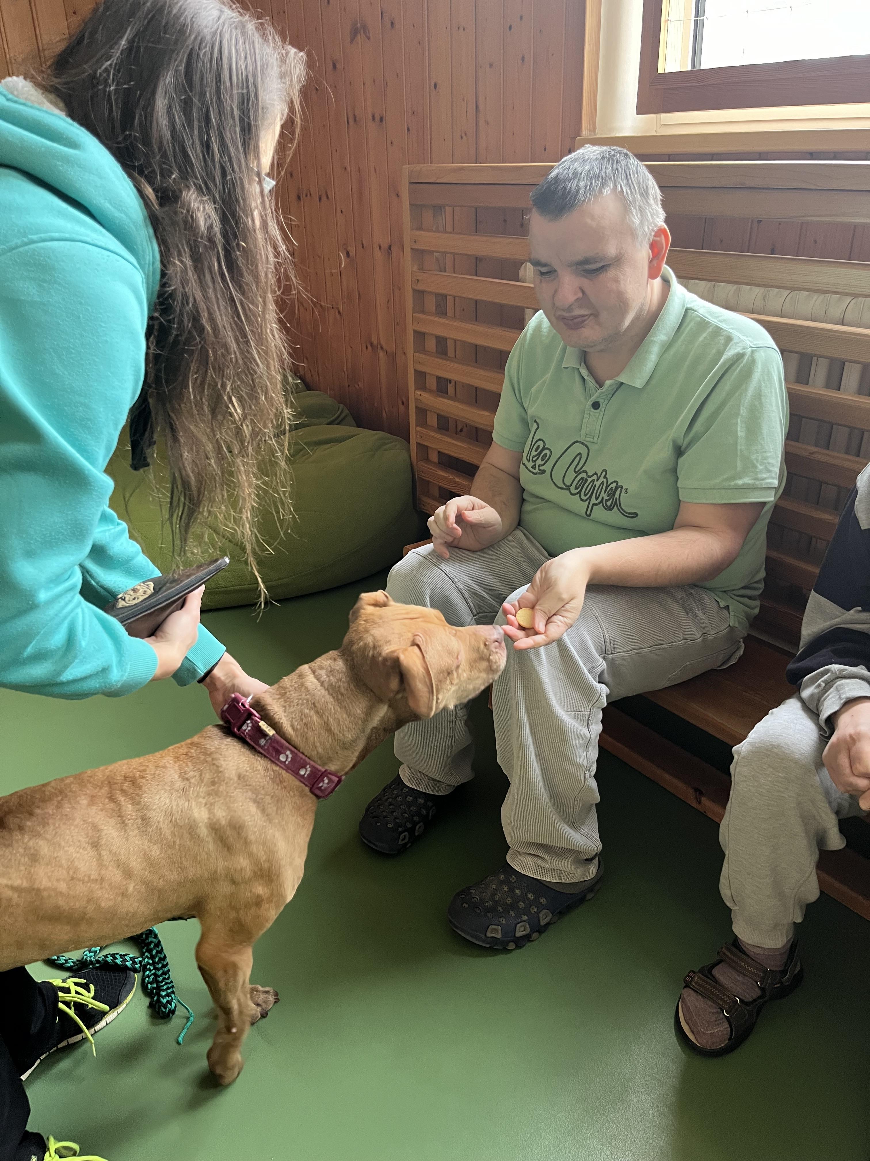 Uživatelé Domova pod Kuňkou rádi tráví čas se zvířaty, a tak se zúčastnili skupinové canisterapie.