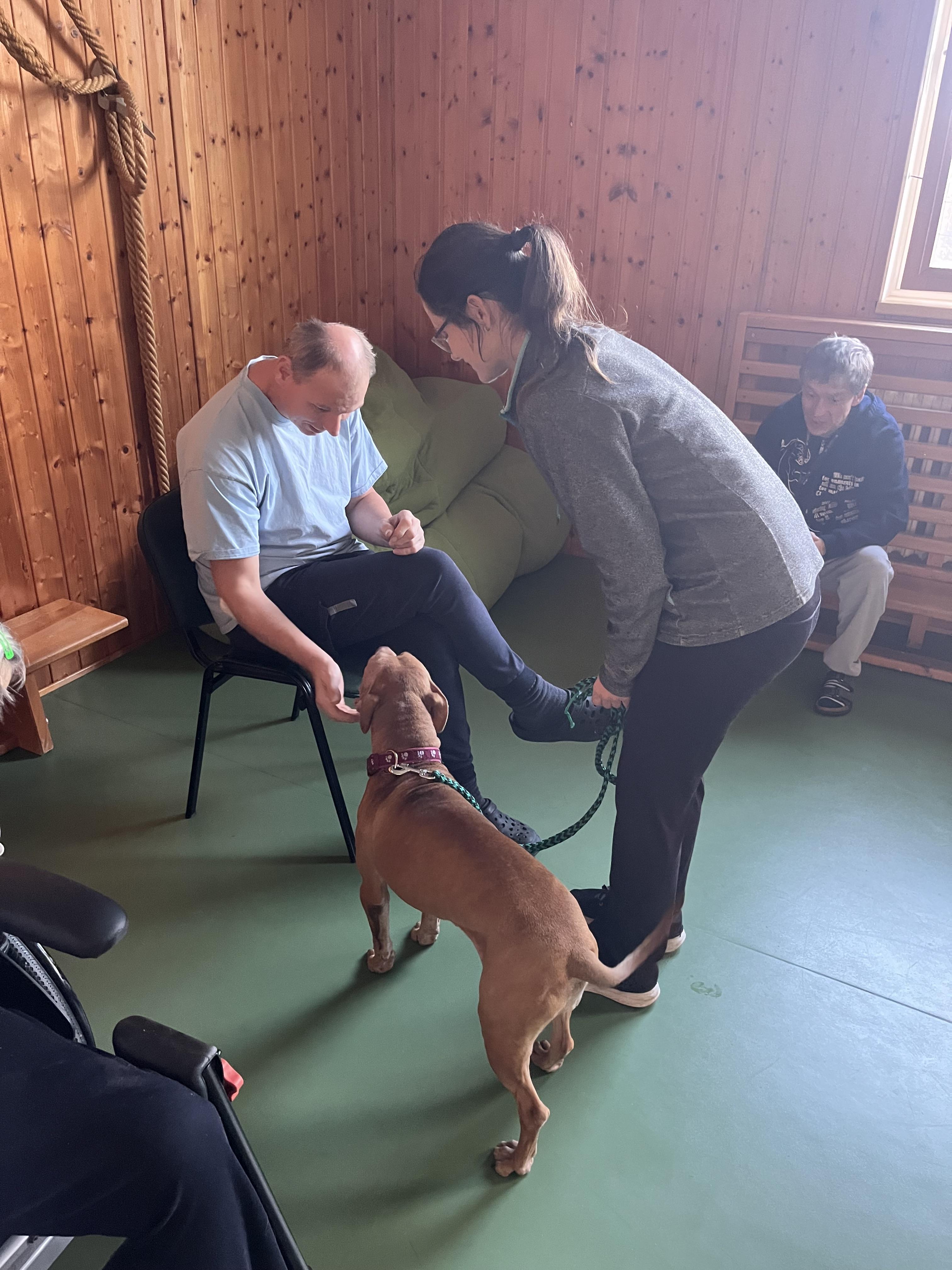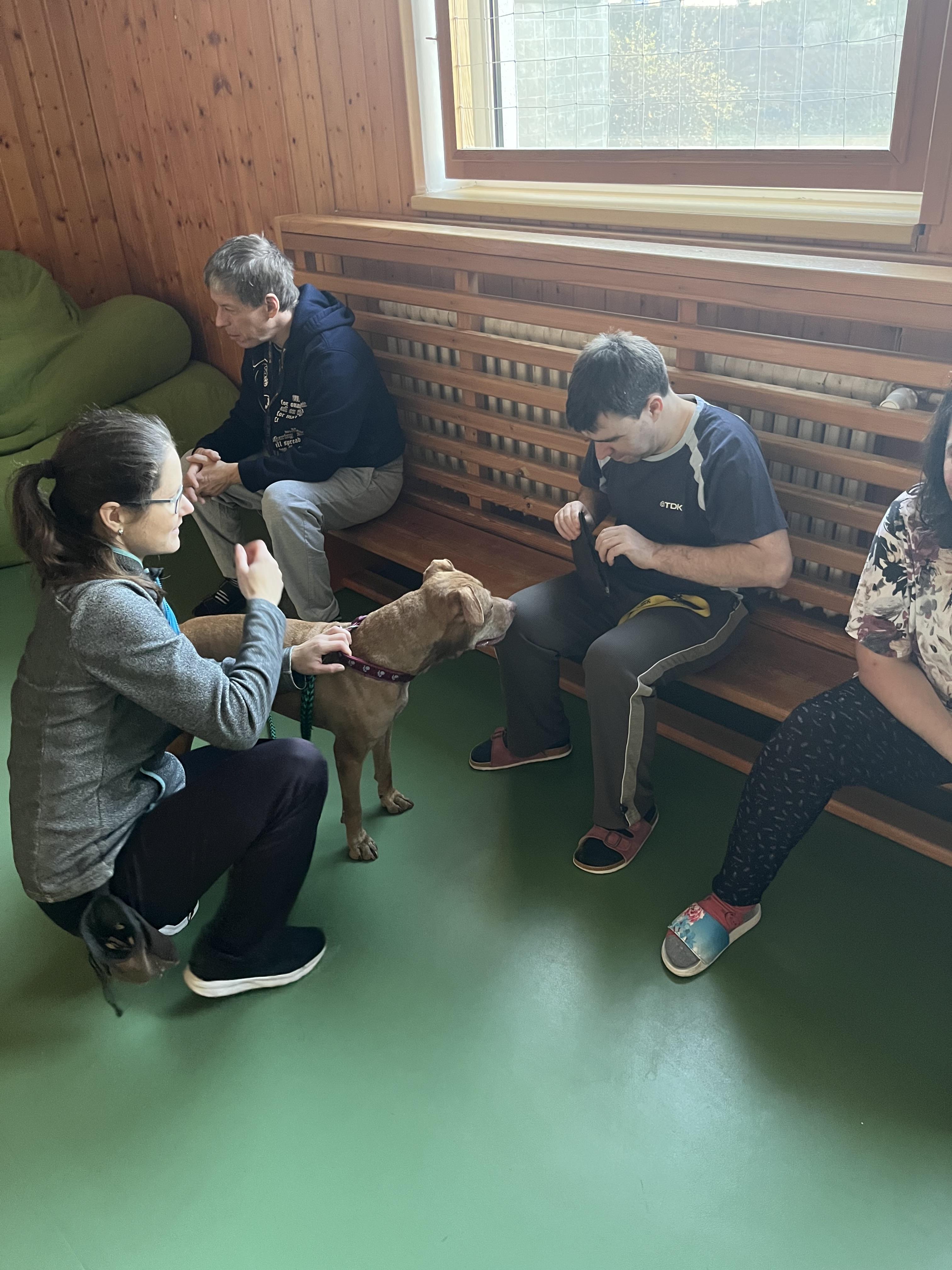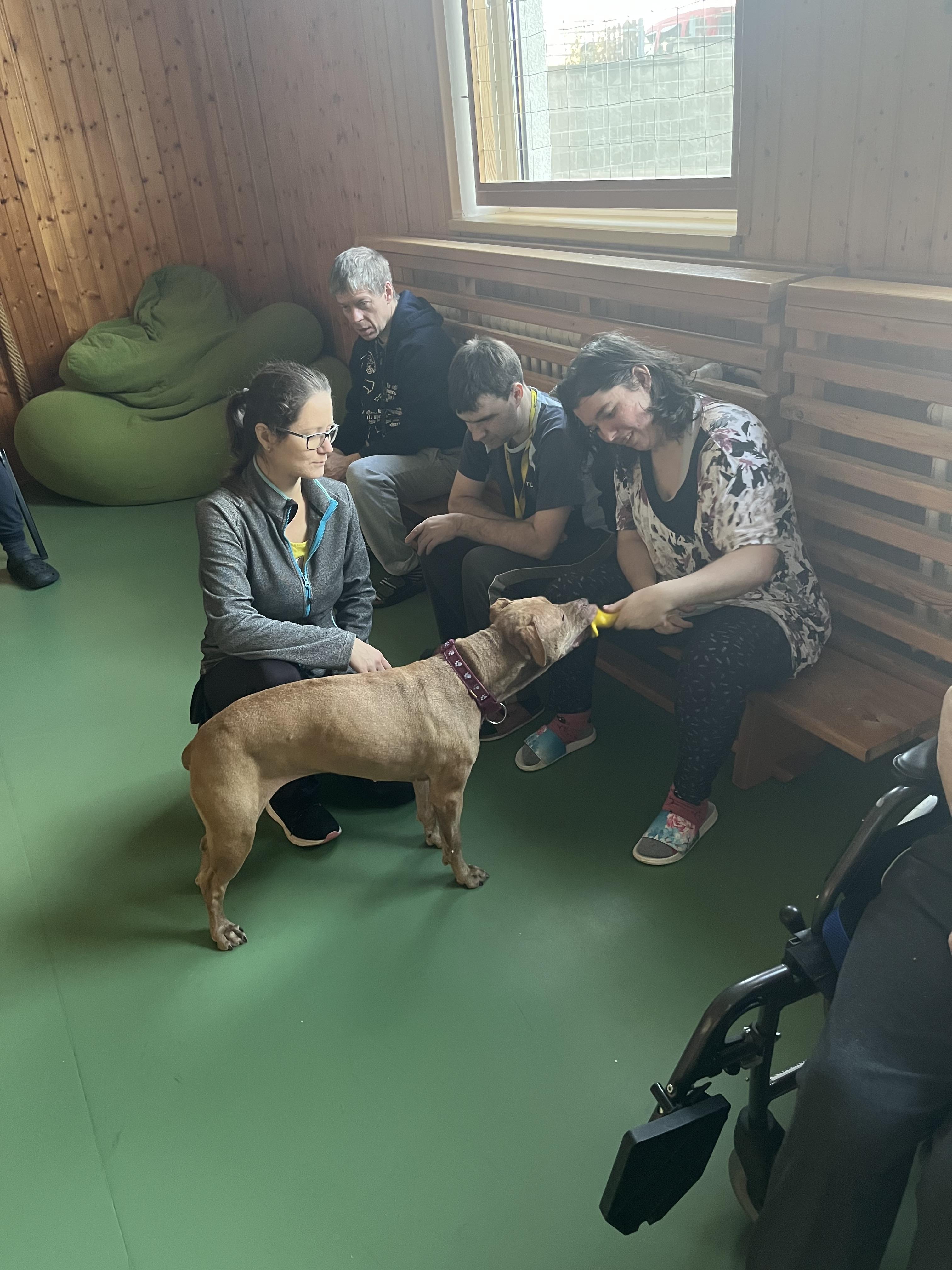 V Domově pod Kuňkou proběhla skupinová canisterapie, která uživatelům zpříjemnila den.