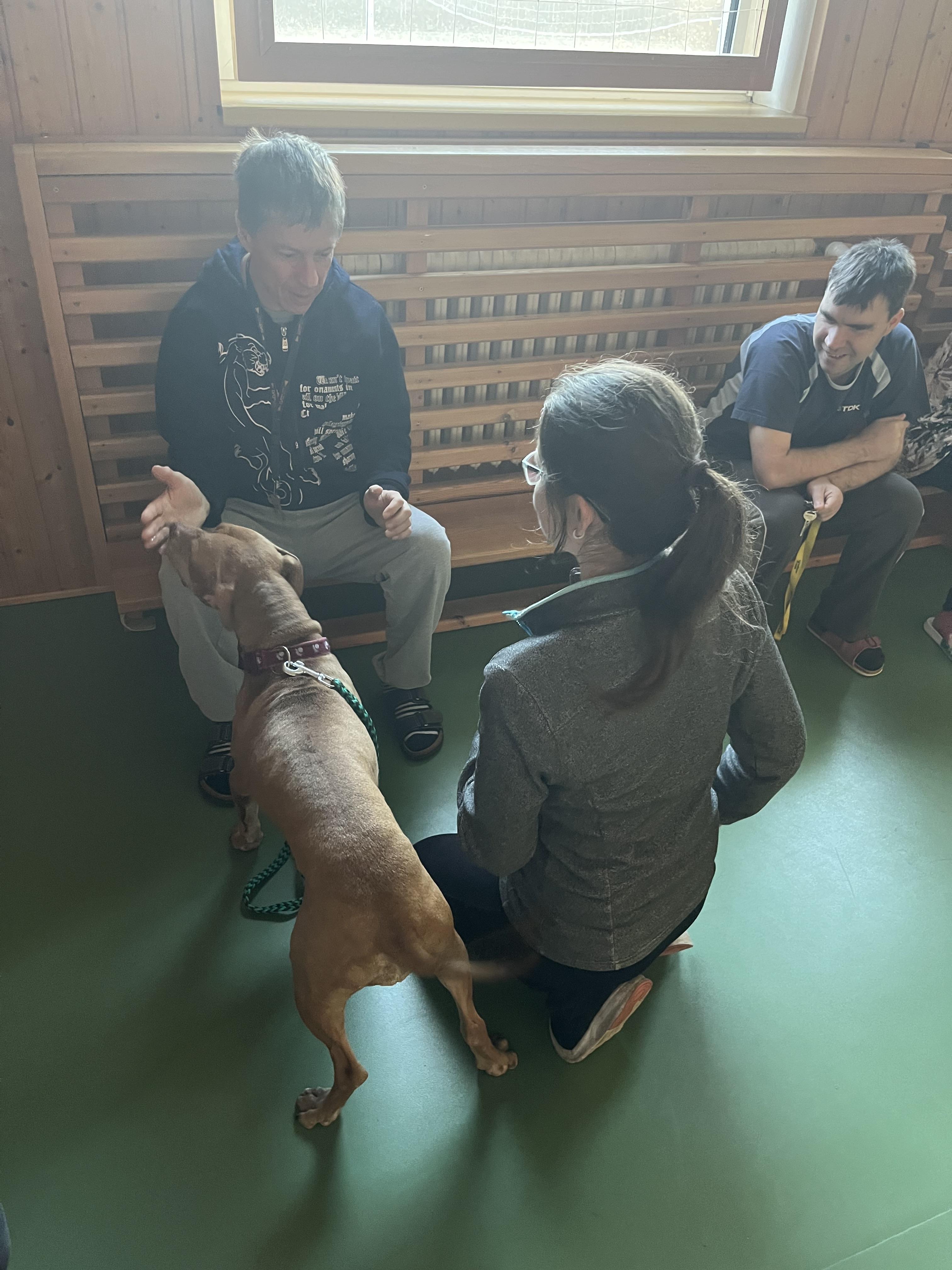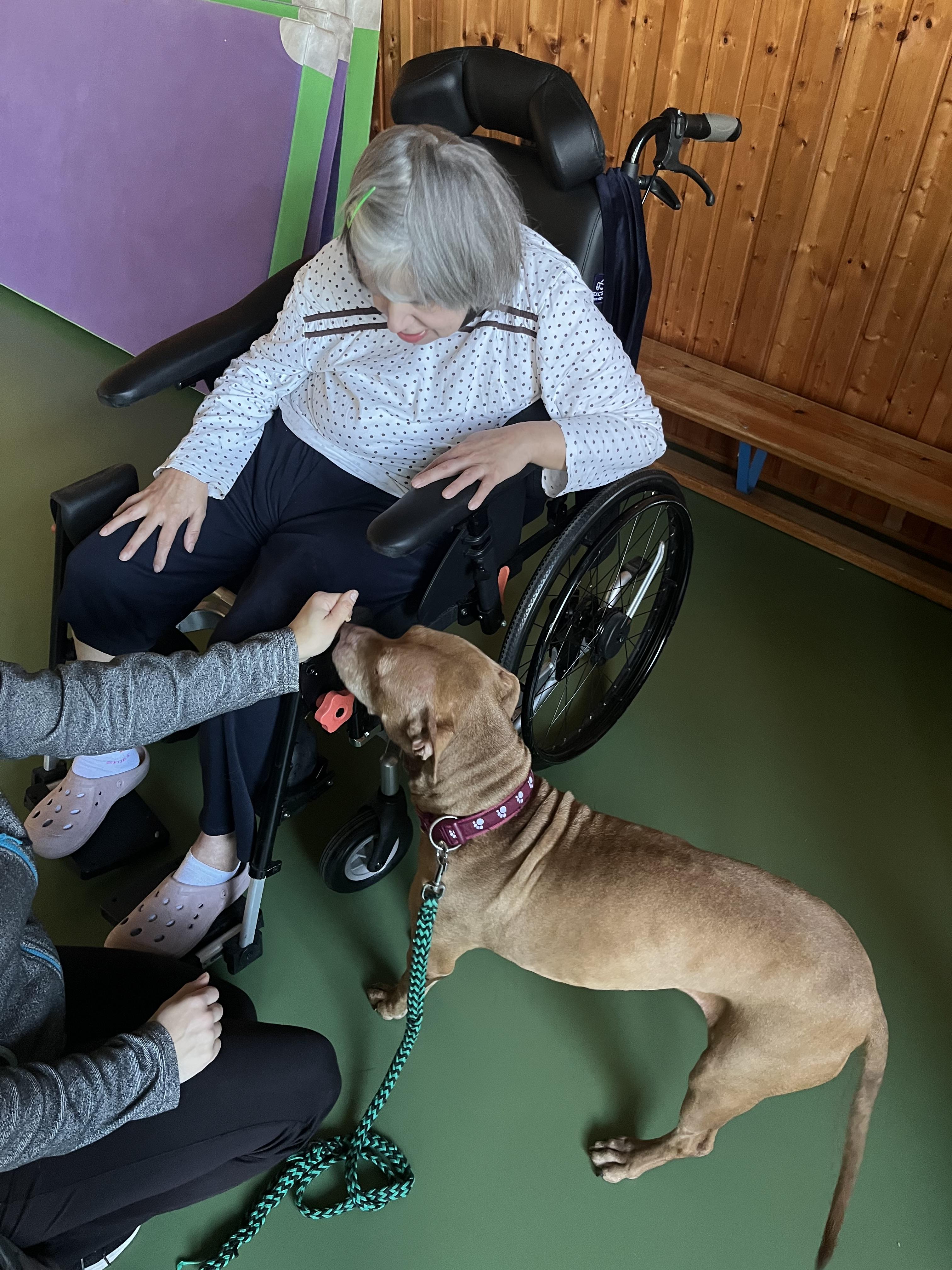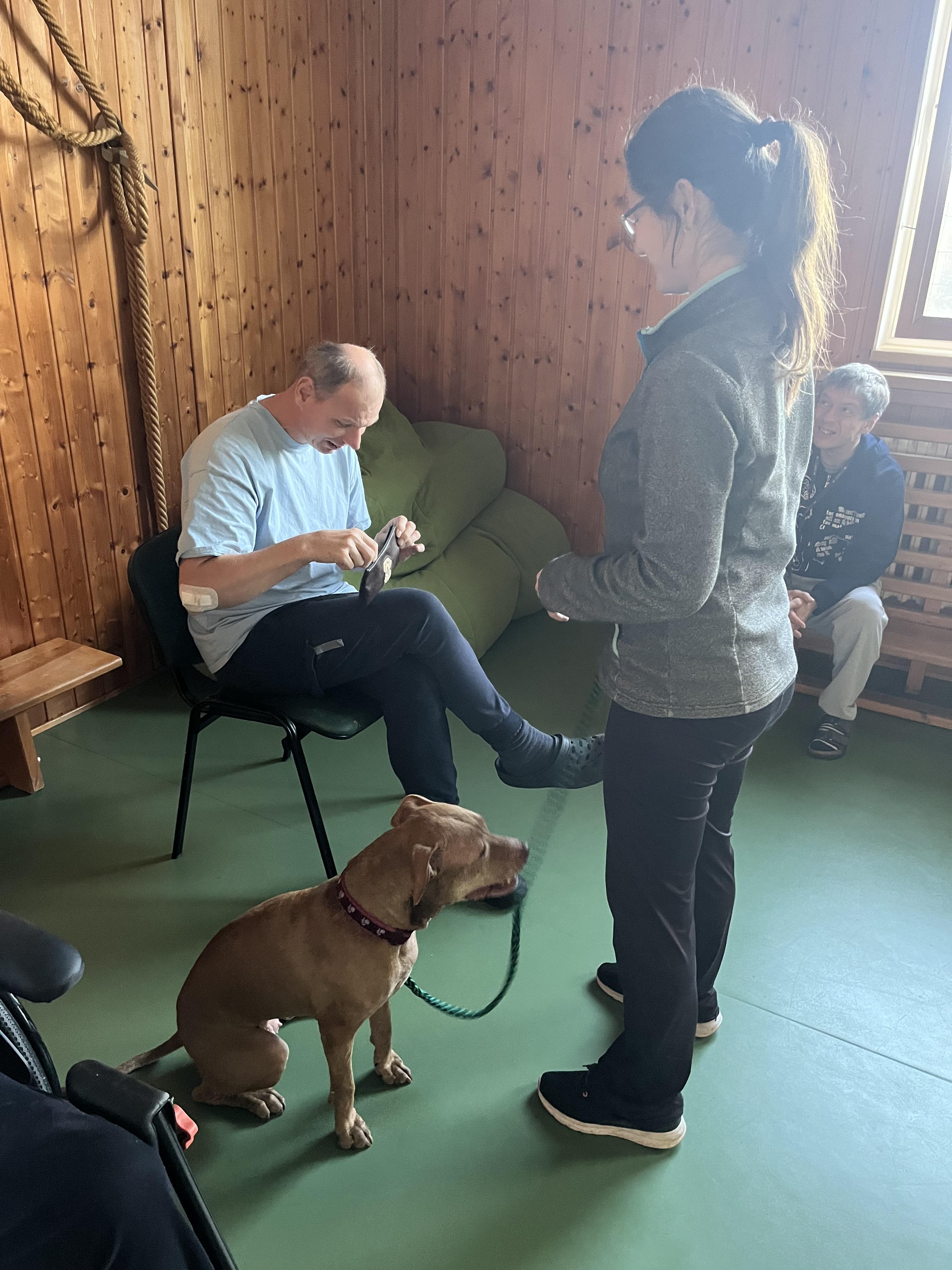 V Domově pod Kuňkou proběhla skupinová canisterapie, která uživatelům zpříjemnila den.