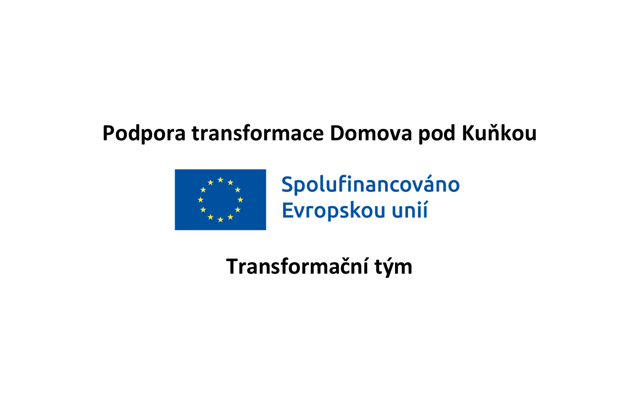Hlavním cílem probíhajícího projektu Podpora transformace Domova pod Kuňkou, který je spolufinancovaný Evropskou Unií, je přechod od ústavního typu péče ke komunitně poskytované podpoře. Tento proces představuje změnu v přístupu k uživatelům - místo života v instituci je kladen důraz na individuální potřeby, samostatnost a začlenění do běžného života v komunitě.